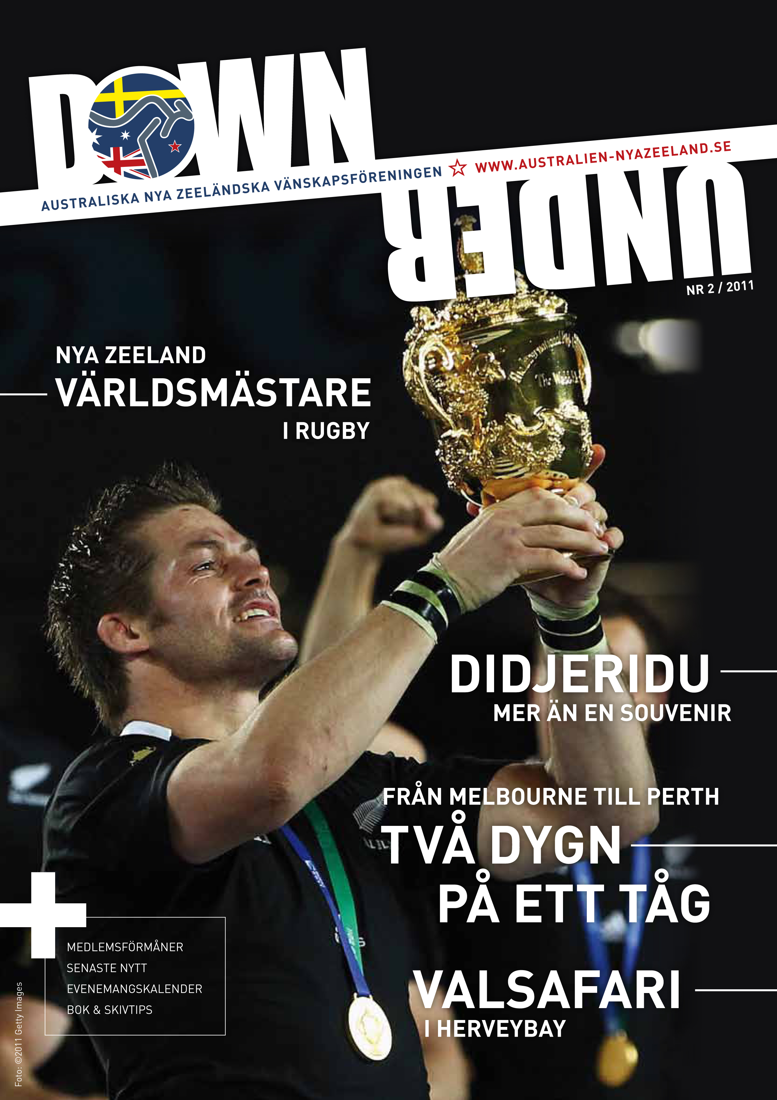 Vi fick en fantastisk respons på premiärnumret av Down Under, något som gjorde oss mycket glada. Nu håller ni nummer två i handen och vi hoppas att ni ska uppskatta detta nummer lika mycket. Den stora händelsen Down Under under hösten har ju utan tvekan varit Rugby – VM som gick av stapeln i Nya Zeeland. All Blacks frälste hemmanationen och blev till folkets stora glädje världsmästare. Australien knep bronset, så visst gick det bra för ”våra” länder. Föreningen har numera en av sina styrelsemedlemmar Åsa Löfvendahl bosatt på Nya Zeeland vilket bäddar för många spännande rapporter och reportage från landet på andra sidan jordklotet. På tal om reportage och artiklar, vi efterlyste reseberättelser i förra numret och till vår stora glädje kan vi redan nu publicera inspirerande reseberättelser insända från våra medlemmar. Föreningen funderar dessutom på hur vi ska kunna utveckla samarbetet med våra medlemmar och precis som vår ordförande Erwin nämner i sin ledare så kan en sak vara att vi i samarbete med någon resebyrå starta specialresor. Har ni önskemål så hör gärna av er, det kan vara sportresor, vinprovning, kultur, natur osv. Vi har ju ett fantastiskt nätverk med kontakter att tillgå i både Australien och Nya Zeeland. Här hemma har vintern precis tagit sitt grepp, vad passar då bättre än att krypa upp i mysfåtöljen och läsa om länderna där sommaren precis har börjat? Mycket nöje!