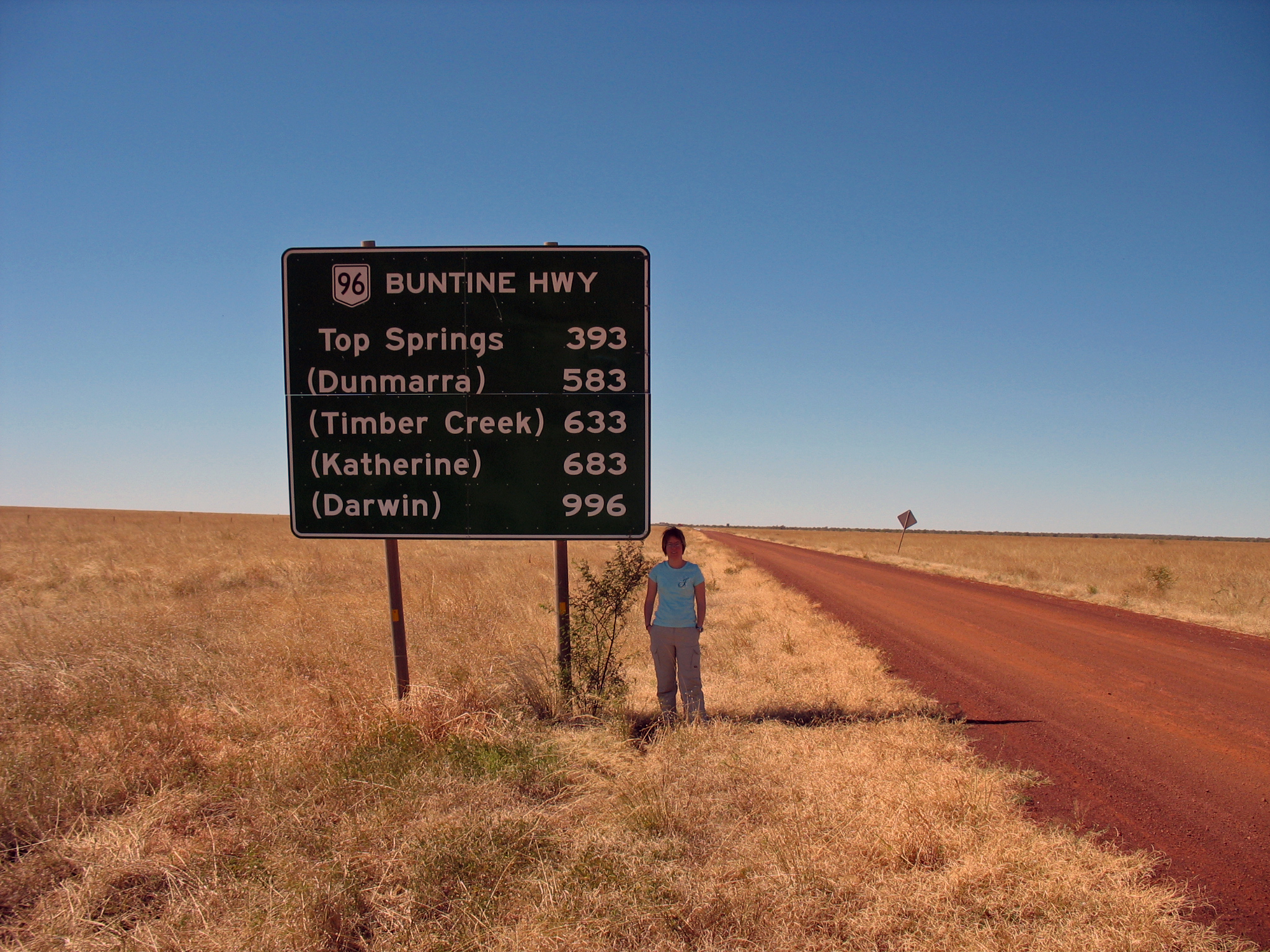 Redan när vi kom en liten bit ifrån Darwin kändes vinden svalare, nästan kylig. Efter en hel dag i bilen övernattade vi sedan i den lilla hålan Top Springs. Det var redan mörkt när vi kom fram, så vi skippade tältet och lyxade till det med ett dubbelrum. Vi åt kvällsmat på puben och jag hade glädjen att för första gången uppleva de gröna grodornas fascination av att bosätta sig i toaletter. Trots att jag nu upplevt det flera gånger blir jag fortfarande lika fascinerad av att spola och plötsligt se en illgrön krabat plumsa ner i toalettstolen.