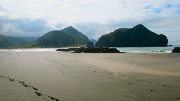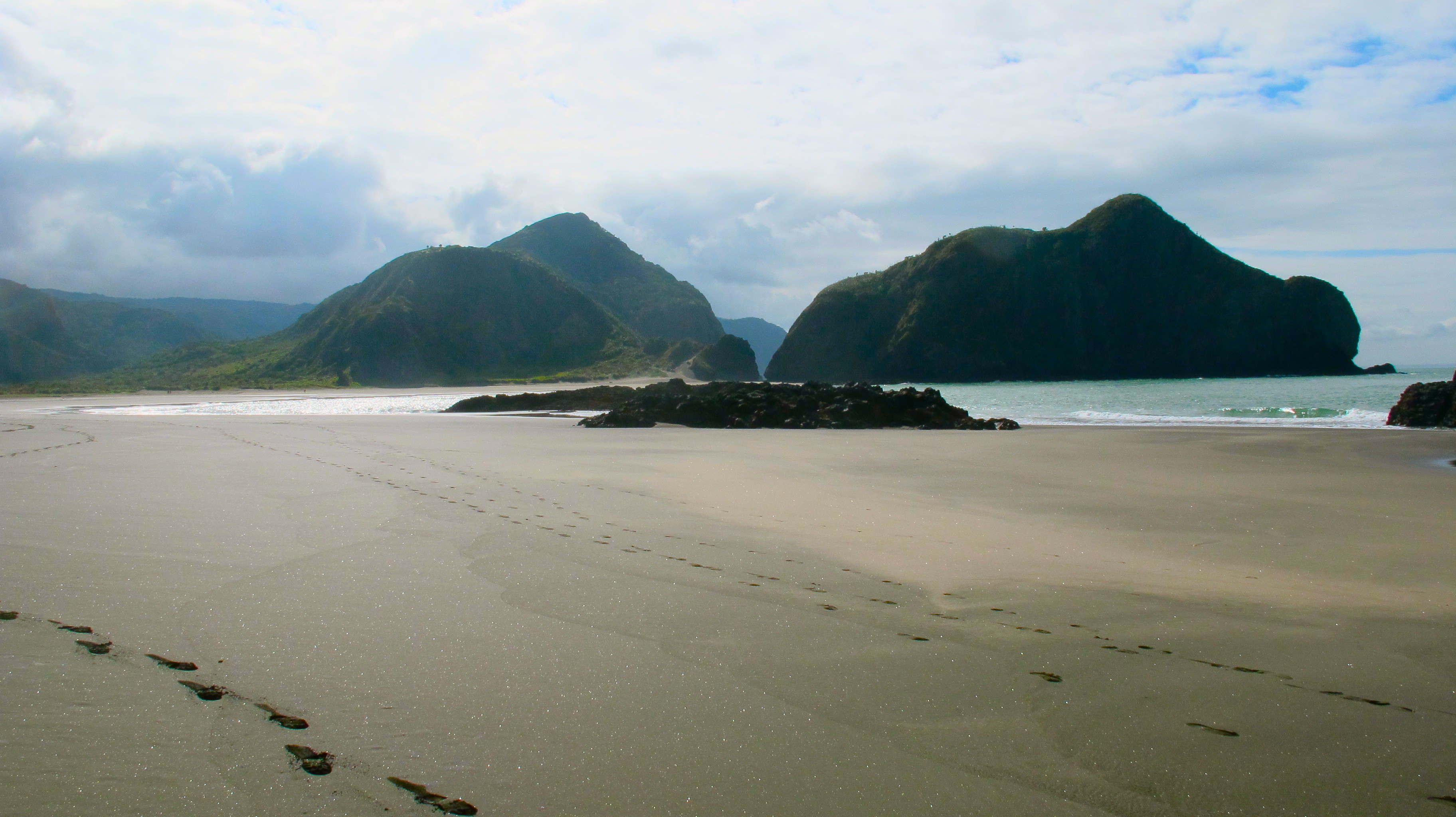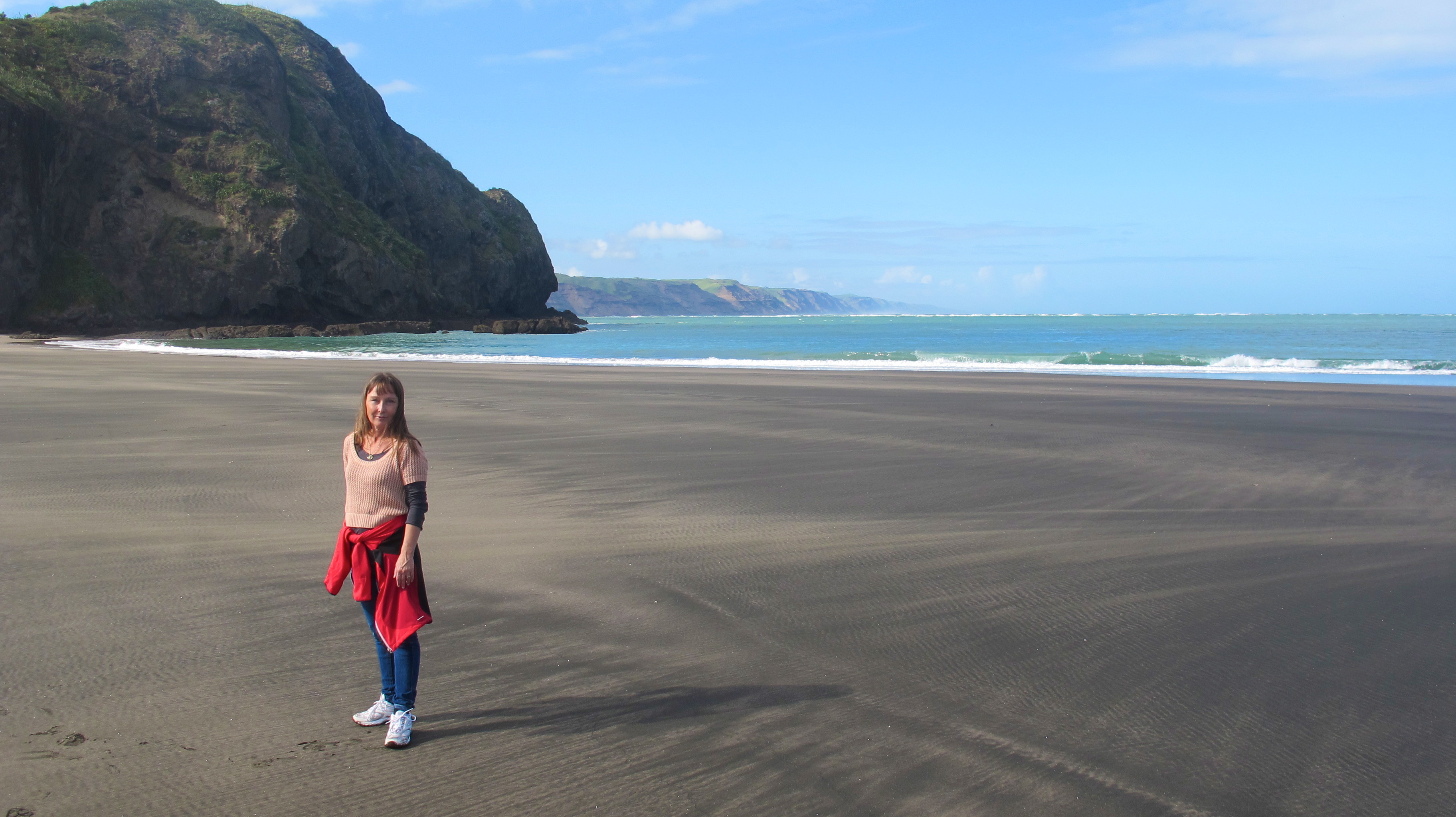 Vi tar oss hit från Auckland via Titirangi. Vi färdas på små slingriga vägar genom den täta regnskogen och kommer snart fram till Huia och sedan vidare till Little Huia. Här färdas vi längs havet, alldeles intill vattnet för att snart komma upp över bergen igen. Vi möter knappt några andra bilar och man slås av att vara helt ensamma på jorden. Waitakere Ranges Regional Park omfattar mer än 16 000 hektar regnskog och kustområden. Förutom de vackra stränderna bjuds det på hisnande vyer, spektakulära klippformationer, bäckar, vattenfall och gårdar med utsikt över den vilda västkusten. Via den slingrande sista biten kommer vi fram till vägens ände och till Whatipu Lodge och parkerar bilen. Whatipu Lodge, sägs föresten vara hemsökt av spöken, både av ”The pink lady” och sjömän vars fartyg förlist på denna förrädiska kuststräcka. Den svarta stranden är enorm både vad avser bredd och längd och vetter ut mot Tasmanska havet. Whatipu har varit en naturlig boplats för människor under hundratals år på grund av sina rika naturtillgångar och sitt strategiska läge. Från början var platsen bebodd av maorier vilka har utkämpat flera stamkrig här. Mellan 1866 och 1886 fanns här sågverk och en timmerkvarn. Härifrån kan man också promenera till Karekarestranden, där filmen Pianot, spelades in och till den gudabenådat vackra Pihastranden. Att bada är inte att rekommendera och stora skyltar varnar för bad eftersom det finns farliga strömmar här. Andra alternativ finns det gott om och i området finns flera vandringsleder, både till grottor, utsiktsplatser och vattenfall. Att upptäcka den här stranden är tillräckligt nog för oss den här söndagsförmiddagen och är man intresserad av fåglar är det en perfekt plats. Väl ute på den öppna stranden ser vi havet, långt ut då det är lågvatten. Enorma vågor bryter i fjärran och jag kan förstå varför detta område var så farligt för sjöfarten under kolonialtiden. Enligt maorielegenden är den här kusten en del av den andliga vägen, där själarna sedan tar sig vidare mot Cape Reinga.