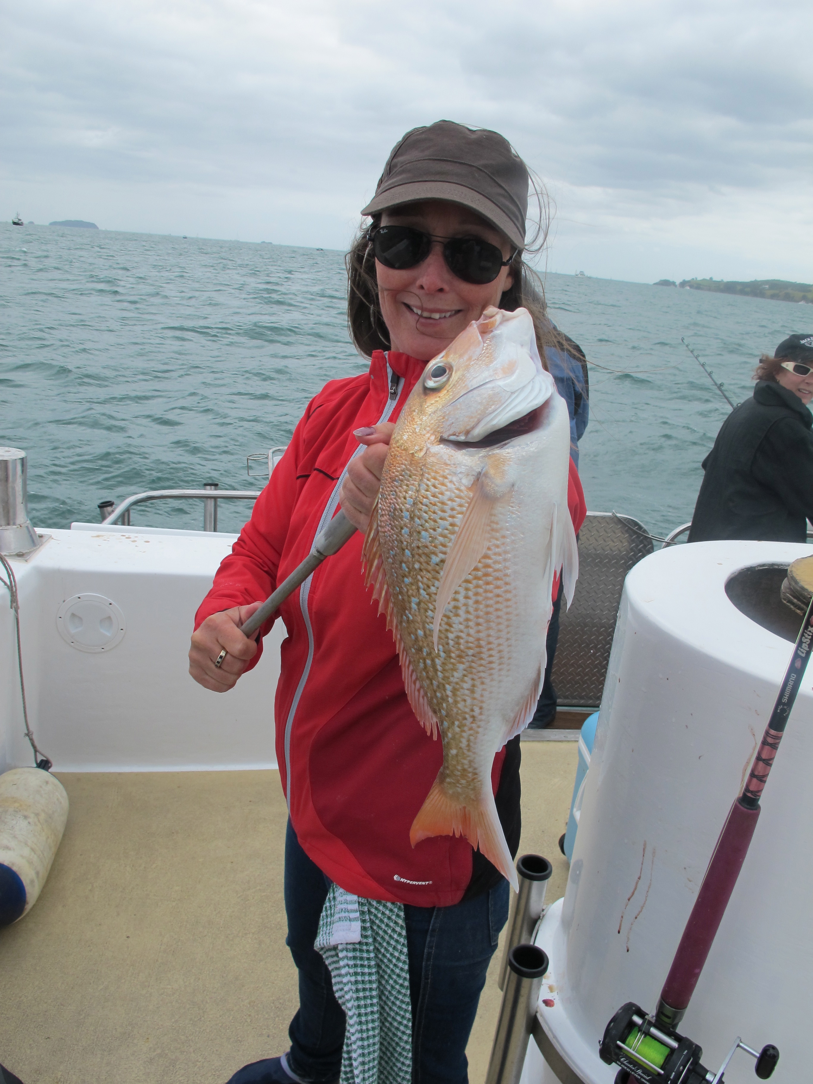 Vi gav oss iväg vid 9-tiden på förmiddagen och åkte en bit ut från land, men höll oss fortfarande inomskärs. Vi fiskade med båtens utrustningar och använde oss av bottenmete med betesfisk och bläckfisk. Vi fiskade på ungefär 20-25 meters djup. Det tog inte lång tid förrän det första hugget kom och den första snappern drogs upp. Efter den så följde ett trettiotal fiskar, där de flesta var i 3-4 kilos klassen. Det var en mycket bra dag, men så är Auckland ett världsberömt fiskeområde. Vi hade också tur med vädret, varmt, lite vind och lagom med sol. Några av oss hade aldrig fiskat tidigare medan andra hade mer erfarenhet. Vår kapten och vår skipper var otroligt hjälpsamma och trevliga och de hjälper till med att sätta på betet och justera utrustningen så man behöver bara koncentrera sig på själva fisket.