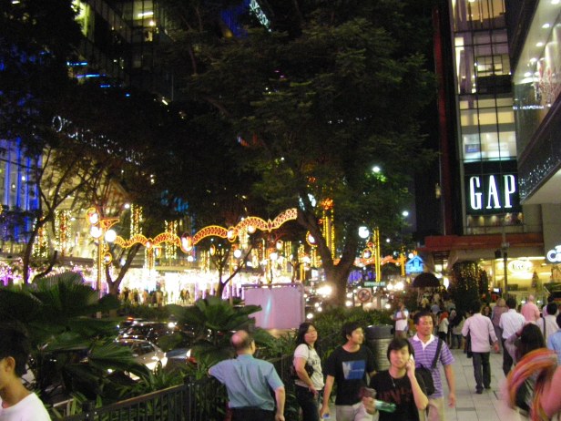 Vi bodde på ett av många hotell som ligger utefter en av huvudgatorna i Singapore, Orchard Road. Här ligger ett antal shopping gallerior vägg i vägg med flera av de större hotellen. Söker man shopping i närområdet är detta rätt ställe att bo på. Vi gav oss ut i den varma eftermiddagen för att uppleva alla dofter och intryck som man får i en asiatisk storstad. Matställen i mängder och ett myller av folk sätter sin prägel på många städer i regionen och Singapore är inget undantag. Här kan man äta och shoppa nästan dygnet runt. Vi tittade en del på T-shirts, Saronger och andra tunna kläder som man behöver i det varma klimatet. I Singapore är det alltid runt 30 grader med bara ett par graders skillnad under året. Redan vid ankomsten och resan från flygplatsen till hotellet slås man av den enorma växtligheten. Allehanda blommor och grönt väller över murar och övergångar så den grå betongen är väl dold.