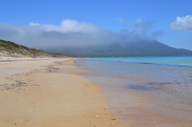 Den sjätte dagen var det dags att vända norrut igen. Mulen morgon och sedan hade vi regn till dess vi anlände i St Helens (265 km) på östkusten. Smala, kurviga och branta vägar, ibland utan vita linjer, innebar full koncentraton hela vägen. St Helens är en riktig sommarturistort. Då regnet hade upphört startade vi en 90 minuters promenad längs stranden söderut. Vi hittade ostron och dristade oss till att smaka den. Den andra dagen i St Helens tog vi bilen till Binalong Bay och vandrade till Skeleton Point.