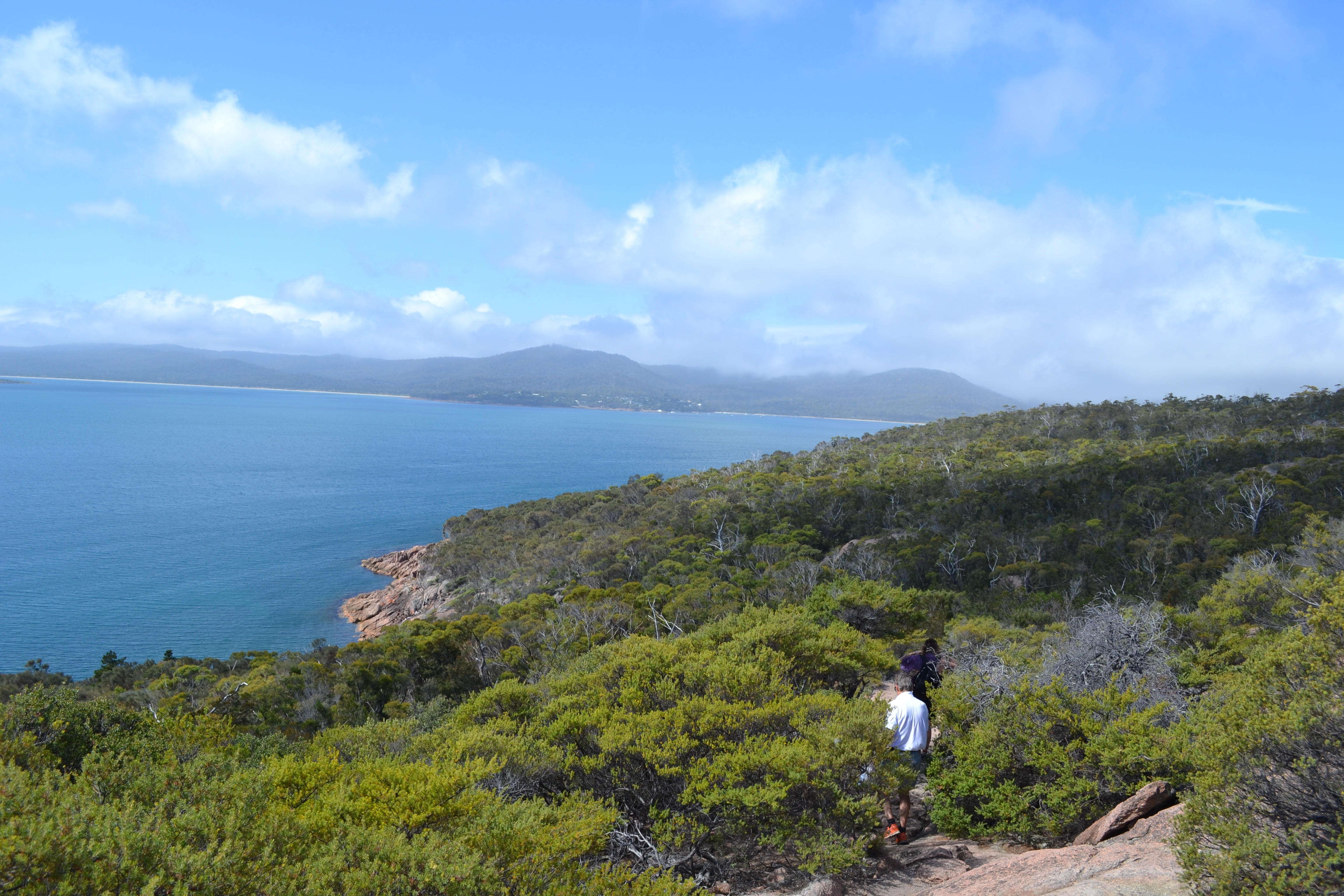 På julaftonens morgon startade vi resan till Freycinet National Park (60 km), som har fått sitt namn efter den franske upptäcktsresanden Louis de Freycinet och grundades 1916. Vi stannade till vid Friendly Beaches och betalade 24 AUD för inträdet till nationalparken. En känguru och fin utsikt var behållningen. Några renhållningsarbetare berättade att vi skulle fortsätta 20 km till för att komma till Visitor´s Center. Vi körde till parkeringen Wineglass Bay Carpark för att starta den 11 kilometer långa sträckan Wineglass Bay Track-Peninsula Track- Hazards Beach-Hazards Beach Track. Terrängen var mycket växlande, stenigt, brant uppför och nedför, sand och vanligt skogsunderlag. Vid Wineglass Bay Lookout var det väldigt många människor, medan vi på Peninsula Track var nästa ensamma. Paus vid Hazards Beach, en kilometerlång härlig, men öde strand. Wineglas Bay har rankats som en av världens tio bästa stränder. Rundvandringen tog fyra timmar. Tillbaka på hotellet konstaterade vi att det inte var mycket som påminde om julafton och istället för julskinka och lutfisk, intog vi te och ostbricka på rummet.