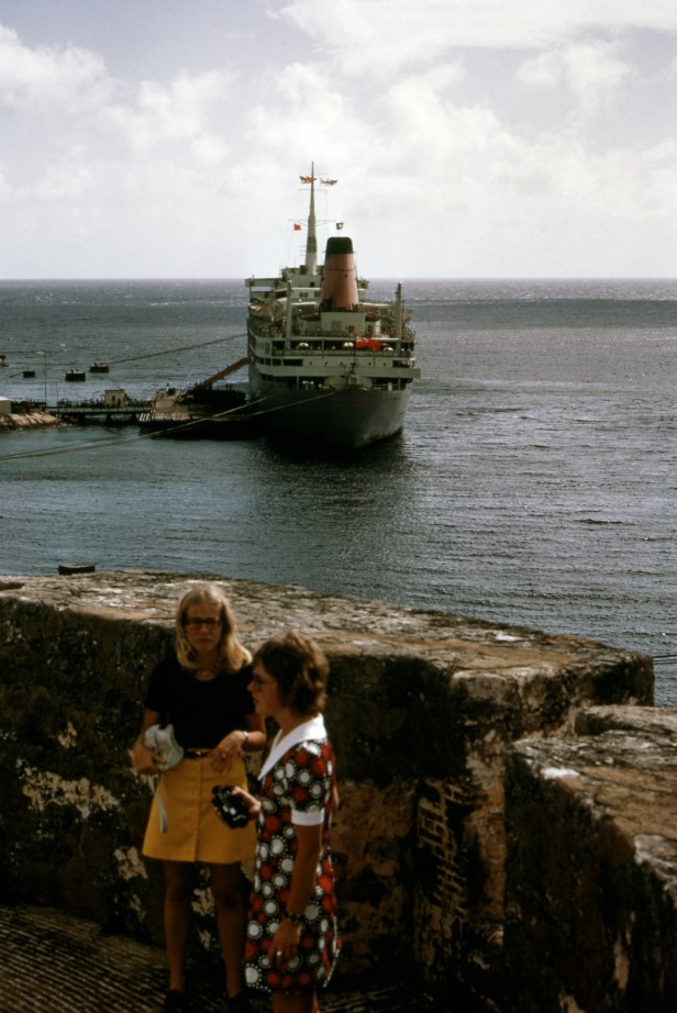 Vårt första stopp i Bridgetown, Barbados efter åtta dagar på en stundtals gungig resa över Atlanten. Vi gled in i hamnen vid 9-tiden en mulen lördagsmorgon. Jag minns hur underbart det var att stå på däck och se den frodiga vegetationen och känna en ljuvlig värme. SS Northern Star skulle lämna vid midnatt så vi hade en full dag och kväll att se oss om. Vid det här laget hade vi skaffat oss vänner ombord som vi kunde upptäcka lite av denna västindiska ö tillsammans med. Strandliv, barliv och på kvällen en outdoor nattklubb med steelband, limbodansare och eldslukare. Strax före midnatt kom vi springande för att inte missa båten.
