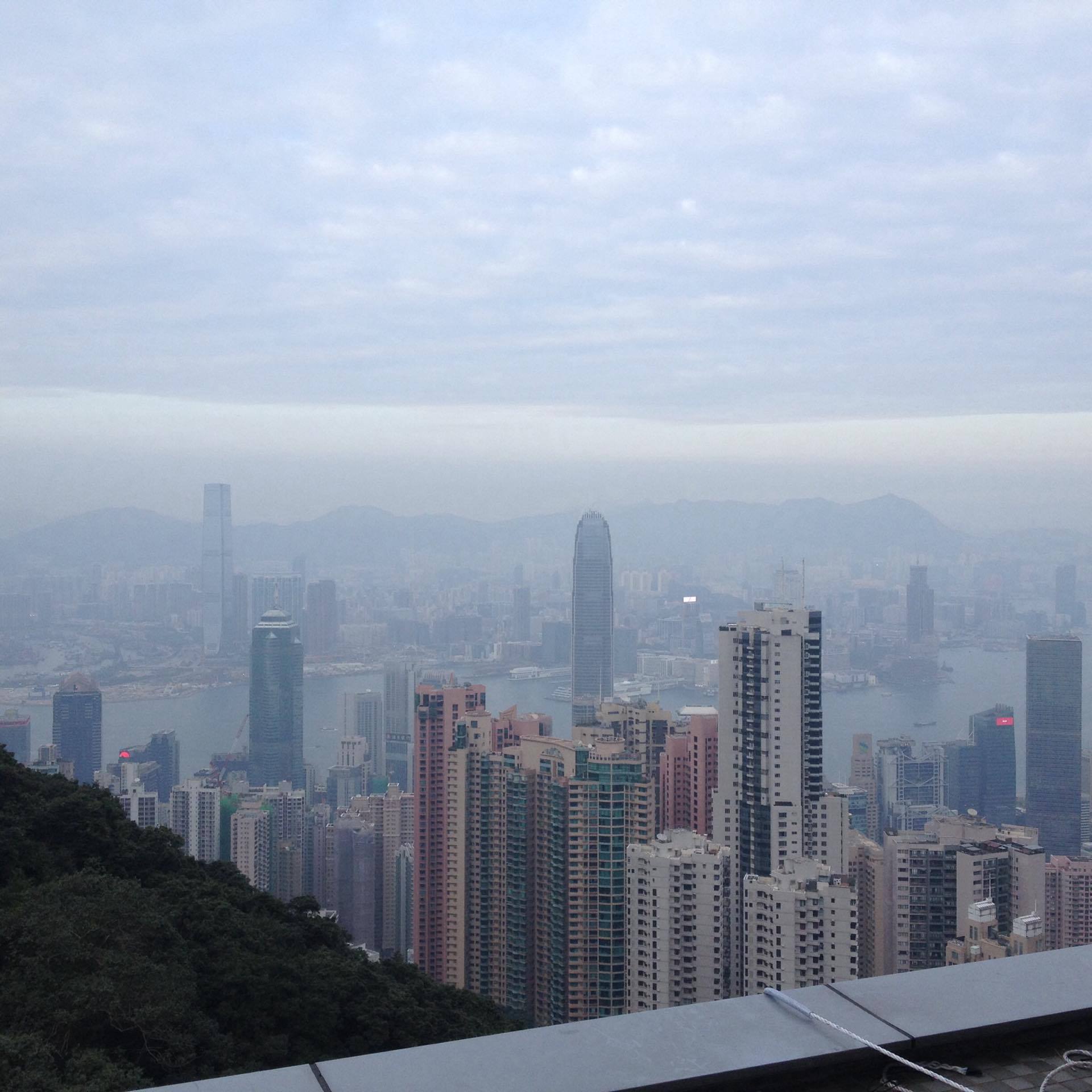 Nästa dag packade vi och checkade ut, men tillbringade hela dagen i Hongkong. Först tog vi en promenerad till Victoria Garden där vi strosade runt, tittade på yogautövande människor och lekande barn i härligt solsken. På väg tillbaka letade vi efter en restaurang och hamnade åter på Jamie’s italienska restaurang. Mycket god mat, men ganska dyrt. Efter en snabb visit på hotellet gav vi oss av i riktning mot Victoria Peak, Hongkongs förmodligen största turistattraktion. Efter ett tag blev vi trötta och tog vi en taxi till destinationen. Resan kostade 22 hongkongdollar (26 kronor) och taxametern hann inte lämna utgångsläget innan vi var framme, och vi kunde återigen konstatera att transportmedlen i Hongkong är billiga. Kön till bergståget upp till Victoria Peak på 552 meter över havet var mycket lång och det tog en dryg timme innan vi kunde kliva på tåget för fem minuters färd till toppen. Tyvärr var det disigt väder, men vi fick ändå en bra utsikt över staden. Inför nedfärden fick vi stå i kö i 30 minuter innan det var det dags att stiga på tåget och åka ner. Vi promenerade till hotellet för att hämta väskorna, steg på flygbussen och fick vara med om en intressant färd genom Hongkong i nattmörkret. Incheckning på flygplatsen och så var semesterresan till Australien med mellanlandning i Hongkong slut för den här gången.