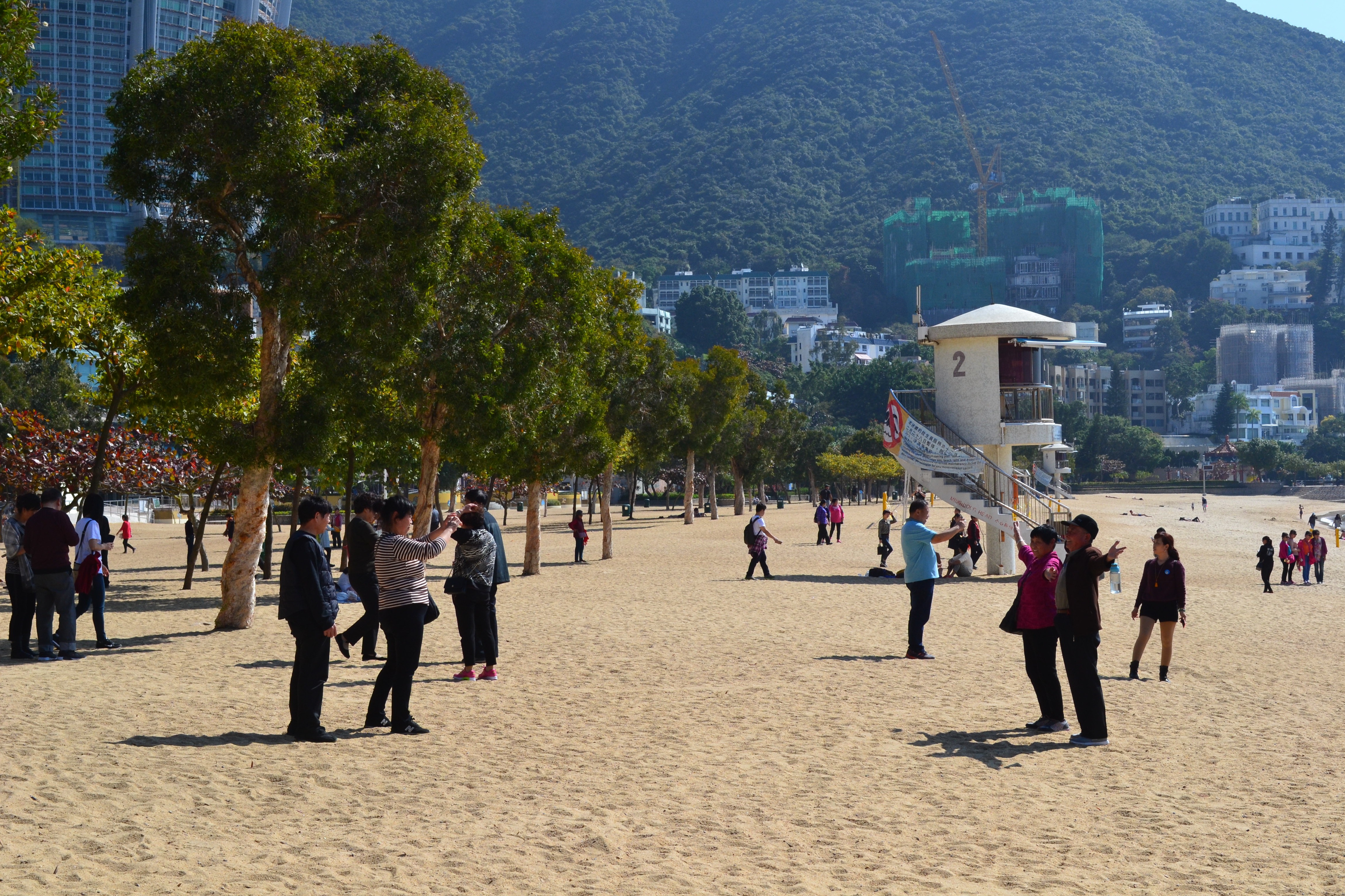 På Trettondagen tog vi en taxi till Repulse Bay Beach på södra delen av ön. Taxiresan tog 20 minuter och kostade inte mer än 67 kronor. Hemresan med buss blev ännu billigare, bara 18 kronor för oss tre. Vi tillbringade hela dagen på den stora och, i stort sett öde, stranden. Som mest var temperaturen uppe i 27 grader. Vi njöt av solen och strandlivet, som var en skön avkoppling till människomyllret, oväsendet och trafiken i innerstan. De som solade var vi västerlänningar. Kineserna kom påklädda till stranden, tog selfies och gick sedan iväg. På kvällen intog vi middag på den berömde kocken Jamie’s restaurang och tog sedan färjan över till Kowloon och promenerade till nattmarknaden på Temple Street. Där var det fullt av människor och ett otroligt stort utbud av varor och matställen. Trots att det var natt och kolmörkt kunde man tro att det var mitt på dagen då allting var upplyst.