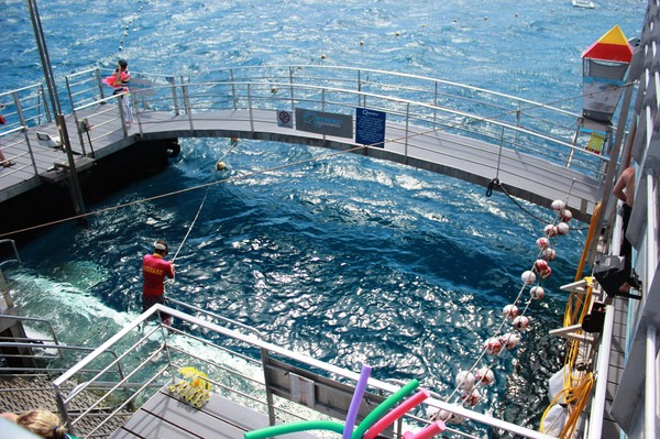 Sista dagen blev det en utflykt till Stora Barriärrevet. Jag tror aldrig jag varit så åksjuk som på den båten! Trots att jag tog en åksjuketablett. Jag var inte ensam om det, för de flesta ombord spydde. Inte så trevligt. Men det var inte så mycket att göra åt det mer än att härda ut tills vi kom fram. Så vackert! Det gick bra att snorkla, men jag mådde så illa och hade aldrig snorklat förut, så jag vågade inte ge mig på det. Däremot kunde man se havslivet tack vare en glasbotten på ett slags ubåt vi kunde gå på och se allt på nära håll, det var väldigt fascinerande. Mamma, jag och en finsk man tog en helikoptertur över barriärrevet och det var fantastiskt att se det ovanifrån. Kanske inte det mest miljövänliga alternativet såhär i efterhand, men vilken upplevelse det var! Det var med skräckblandad förtjusning vi åkte helikopter för första gången (förutom för finnen som klagade på att det här var den sämsta helikoptertur han varit på), eftersom dörrarna inte kändes helt stängda. Det kändes lite säkrare med bältena vi hade på oss i alla fall.