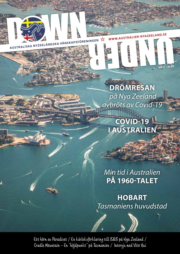 Läs om bland annat: Covid-19 i Australien, Intervju med Sara från Uddevalla vars drömresa på Nya Zeeland avbröts av Covid-19, Min tid i Australien på 1960-talet, Hobart – Tasmaniens huvudstad, Ett hörn av paradiset med Clara Dickens, Min kärlek till B&B på Nya Zeeland, Cradle Mountain – en höjdpunkt på Tasmanien, Intervju med Vito Hui – australisk student i Lund, mm