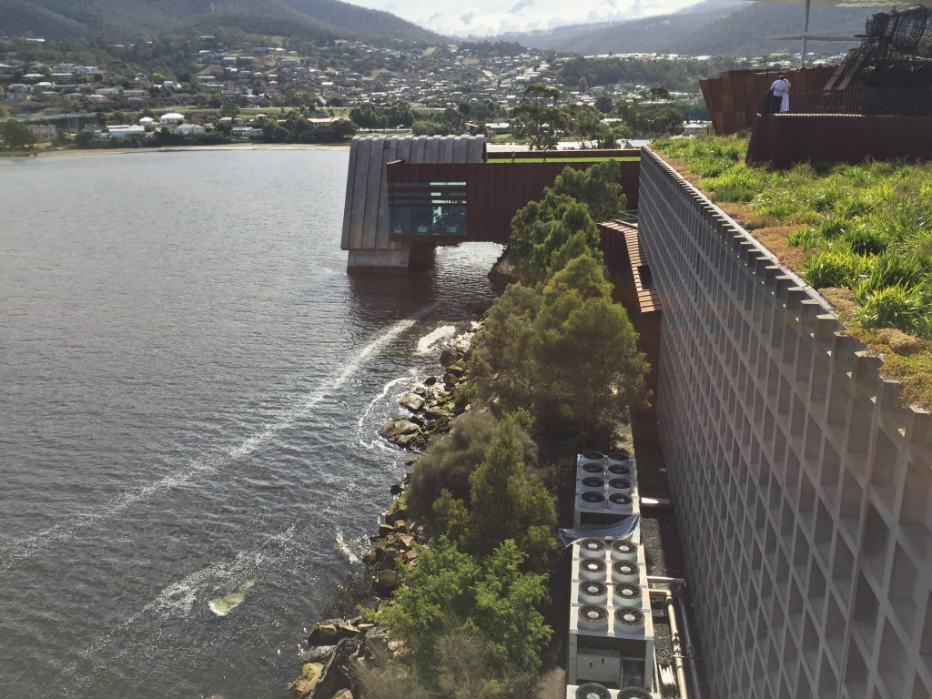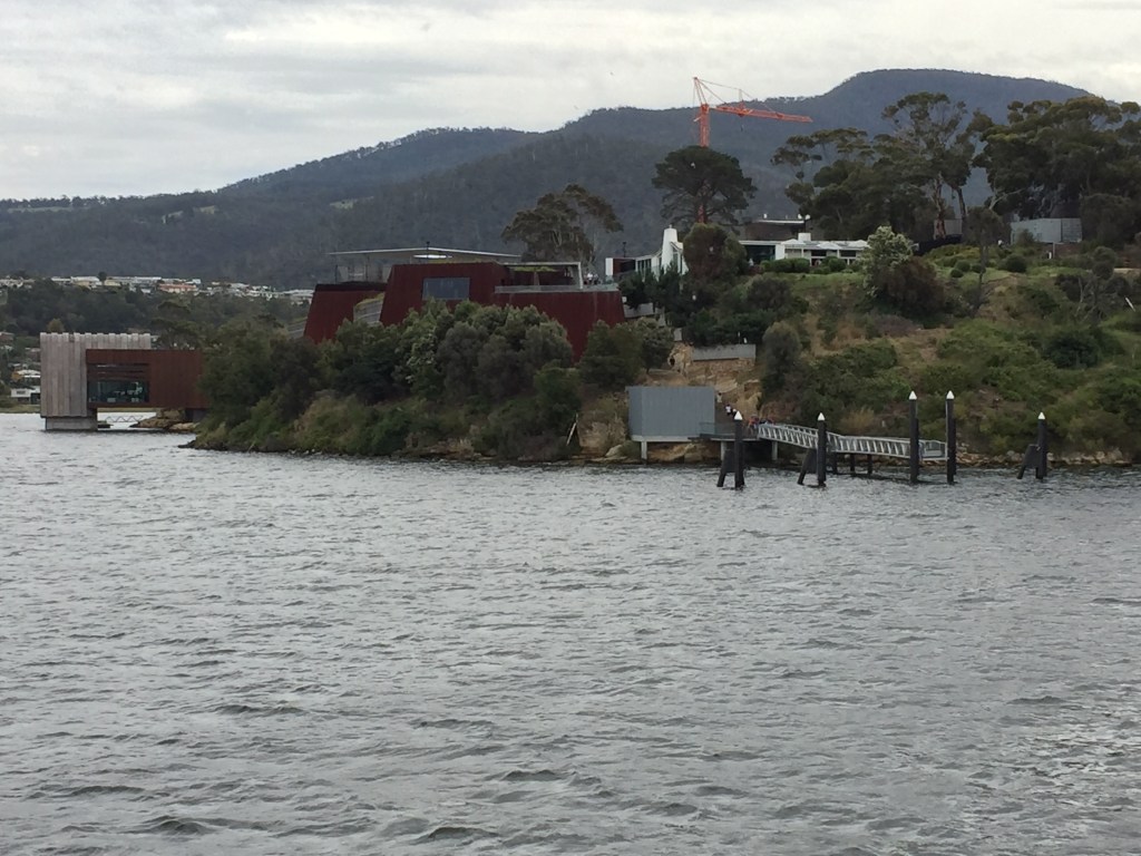 Ett måste, som flera vänner berättade, är att besöka det spektakulära museet MONA (Museum of Old and New Art) som ligger längs floden några kilometer utanför staden. MONA är ett konstmuseum och är det största privatfinansierade museet i Australien. Det går att komma dit med bil men vi rekommenderar att ta båten. Att färdas längs floden, medan man smuttar på något gott att dricka och njuter av utsikten, är underbart. Själva ankomsten till MONA från vattensidan är också mycket trevligare än att leta parkeringsplats. Färjeterminalen ligger centralt i hamnen och båtresan tar en halvtimme.