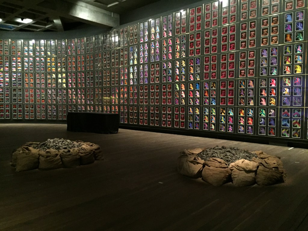 Från vattnet ser inte museet så spektakulärt ut eftersom stora delar av museet är insprängt i berget och under jord. Museets restaurang ligger ut mot floden med stora fönster och ger en vacker vy av floden in mot staden. Vi kliver av på en liten kaj och tar trapporna upp till entrén. På vägen upp passerar man en del intressant konst så vi får direkt en känsla av vad som väntar oss. Själva entrén är täckt med plåtar av blankt stål så det ser ut som silver. Väl Inne i museet tar vi hissen ner fyra våningar för att starta vår rundvandring på bottenvåningen. Det är omöjligt och skulle ta alldeles för lång tid att försöka beskriva allt som finns att se här men några spektakulära saker måste vi ändå nämna. Ett vattenfall som även visar text i vattenflödet, en maskin som gör bajs, där man kan följa hela processen från det att man äter och vidare i magen/tarmen tills det kommer ut igen. Den här processen tar ju rätt lång tid så vi stannade inte för att följa hela förloppet. Vi kunde också beskåda flera mycket speciella och uppseendeväckande installationer och konstverk. Detta är ett av de mest sevärda museer vi besökt i världen. Vi rekommenderar verkligen alla att besöka Hobart och museet. Det kan till och med vara värt att ta en omväg till Tasmanien för att göra detta.