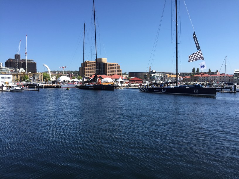 Efter att ha spenderat några timmar på detta fantastiska museum tog vi båten tillbaka till hamnen för att där titta på förberedelserna till nästa dags evenemang. Vi hade nämligen sådan tur att vi var där inför målgången av Sydney – Hobart Race, en av världens mer omtalade seglingstävlingar. Hobart är nämligen ett paradis för seglare och staden är också målet för den årliga kappseglingen från Sydney som alltid startar på Annandag Jul. Denna kappsegling räknas som en mycket tuff och speciell utmaning då den går genom vatten som ofta är svårbemästrade. Här är man inte långt från det som kallas ”The Roaring 40s” som är havet mellan den 40:e och 50:e breddgraden där det råder ihärdiga västvindar beroende på att det på dessa breddgrader finns relativt lite land som kan stoppa dem. Vindarna var/är fruktade, men hade också stor betydelse för sjöfarten under segelfartygens tid.