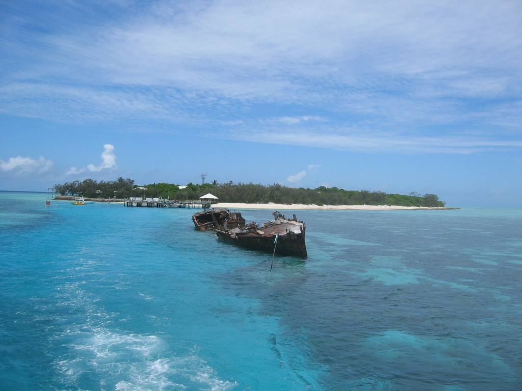 Innan avfärden från Heron Island tog vi ett snabbt bad i havet utanför vår ”hydda” och blev tämligen chockade när mörka skuggor och ormliknande varelser dök upp runt omkring oss. Insåg dock snart att det var stora rockor med lång stjärtfena. Det var nog ett 40-tal totalt och troligen inte farlig för människor. Vi kände oss dock färdigbadade. Intressant var också den information vi fick på öns forskningsstation med anor från 1940-talet.