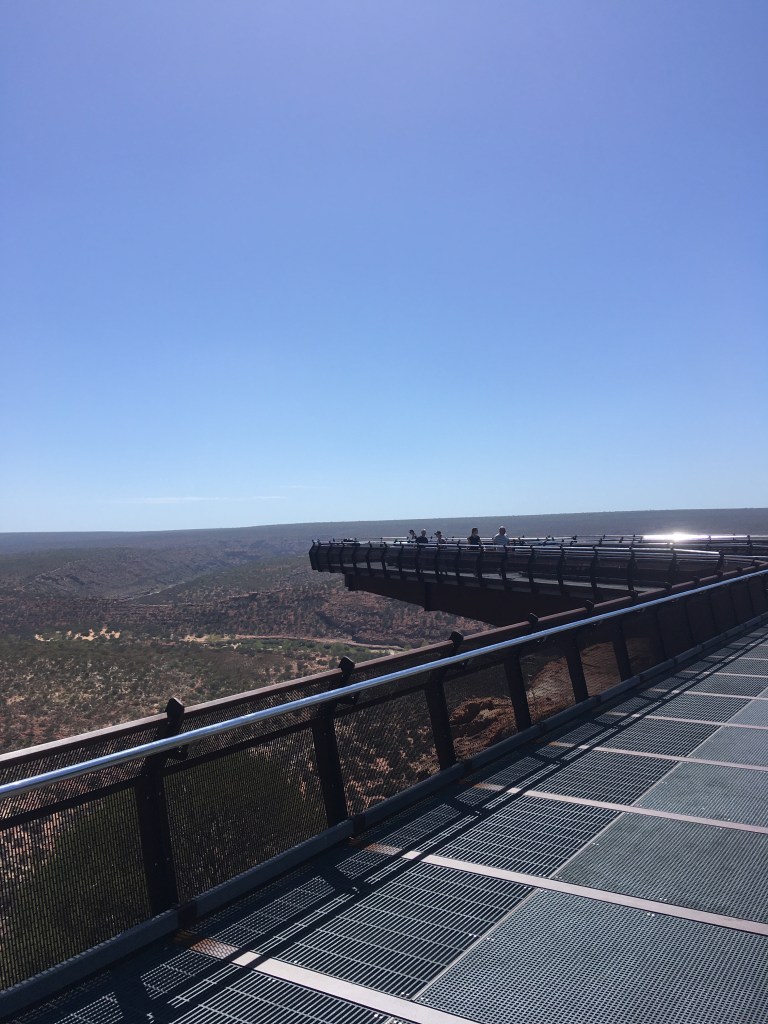 Vårt boende är perfekt placerat bara ett kvarter ovanför den härliga bukten. Efter en rejäl middag på den populära puben avslutar vi kvällen med en öl innan vi intar sviten igen. Några broschyrer fångar vår uppmärksamhet gällande en skywalk i närheten. Beslutet blir att åka dit och sedan avnjuta en lugn frukost i Kalbarri före eftermiddagshettan innan vi drar vidare mot Coral Bay.