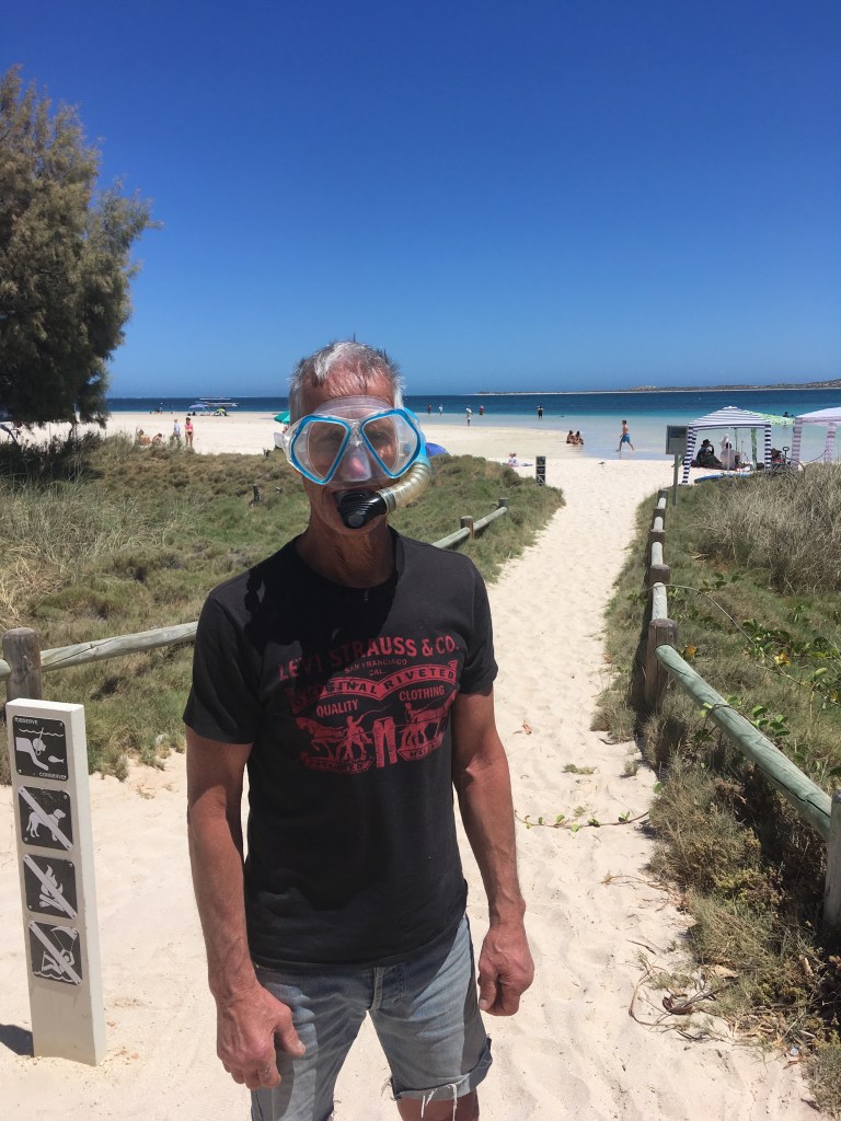 En härligt varierande strand med både stilla vatten och vågor längre bort runt klippkröken, som dessutom gick bra att gå till vid ebb. Vid stranden såg vi stora rockor, mindre bluespotted ray, andra fiskar och så klart hajbebisar i Shark nursery bay, en bukt dit hajarna simmar för att få sina ungar. Hajarna såg vi på förmiddagen men på eftermiddagen syntes de inte till. Vi snorklade i korallrevet som man i princip kan simma ut till eller ta en båt längre ut om man vill.