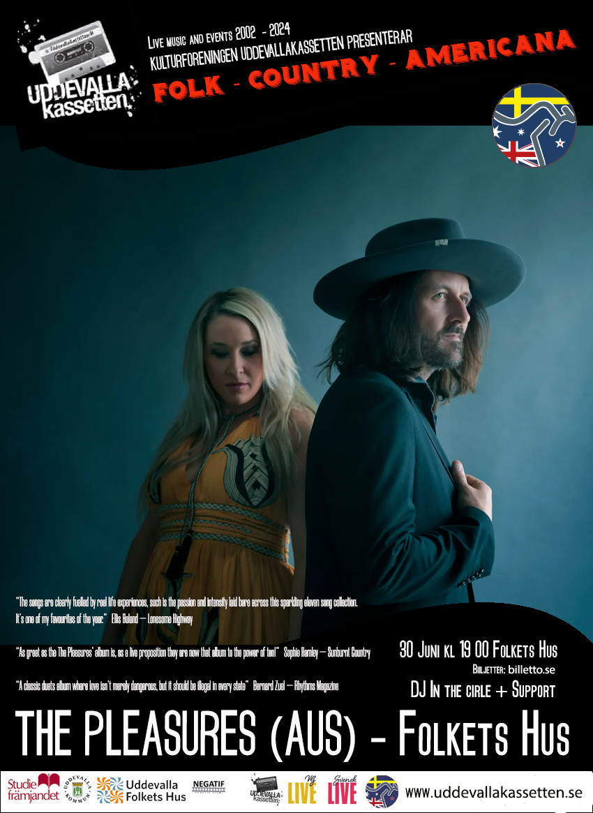The Pleasures frontas av Catherine Britt & Lachlan Bryan från landet down under, Australien. Skitig, bluesig americana med texter om brustna hjärtan och uppslitande separationer. Tillsammans med Damian Cafarella (bas) & Brad Bergen (trummor) är The Pleasures komplett.