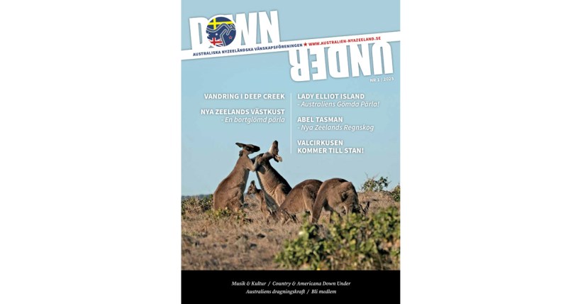 Nytt medlemsnummer ute nu! Down Under nr 1 – 2025. Läs om Vandring i Deep Creek av Tina Bergqvist. Australiens dragningskraft av Madeleine Wykman. Country & Americana Down Under av Magnus Nordin. Lady Elliot – Australiens gämda pärla! Valcirkusen kommer till stan! av Ingmari Dickens. Nya Zeelands västkust – en bortglömd pärla. Musik & Kultur. Abel Tasman – Nya Zeelands regnskog mm