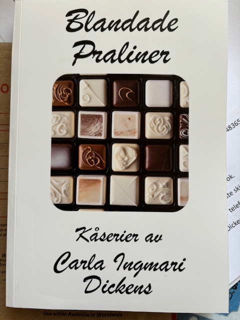 Ingmaris kåserier som ni har kunnat följa i Down Under finns nu samlat tillsammans med godbitarna bland ca 30 års skrivande under titeln ”Blandade praliner”. Boken är på Den är på 277 sidor och bjuder på 91 kåserier i vitt skilda ämnen – roliga, tänkvärda, lite beska, underfundiga… Boken skickat till Sverige för 375:- per ex, kontakta författare för mer info: C_I_Dickens@hotmail.com
